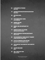 Afficher les morceaux... THE LION KING - Hakuna matata LILO & STITCH - Hawaiian roller coaster ride THE LION KING - I just can't wait to be king PINOCCHIO - I've got no strings MONSTERS INC. - If i didn't have you FROZEN - In summer LAVA - Lava ALADDIN - One jump ahead MARY POPPINS - Supercalifragilisticexpialidocious THE JUNGLE BOOK - The bare necessities ALICE IN WONDERLAND - The unbirthday song THE MANY ADVENTURES OF WINNIE THE POOH - The wonderful thing about tiggers* COCO - Un poco loco THE LITTLE MERMAID - Under the sea DUMBO - When i see an elephant fly SNOW WHITE AND THE SEVEN DWARFS - Whistle while you work THREE LITTLE PIGS - Who's afraid of the big bad wolf? DISNEY PARKS' PIRATES OF THE CARIBBEAN ATTRACTION - Yo ho (a pirate's life for me) PETER PAN - You can fly! you can fly! you can fly! MOANA - You're welcome SONG OF THE SOUTH - Zip-a-dee-doo-dah |