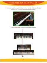 Les claviers • Prise en main de l’instrument • La main droite • La main gauche • Premiers pas et premières notes • Un peu de solfège • Lecture d’une partition • Le rythme • Les premiers accords • Le jeu à deux mains.