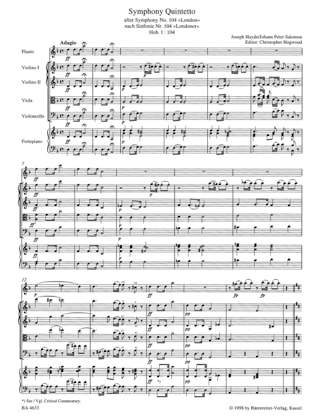| HAYDN Symphony Quintetto London Hob. 1 : 104 - Partitur + Stimmen Joseph Haydn / arr. de la Symphonie Londres n° 104 pour flûte, quatuor à cordes et piano ad lib. par J.P. Salomon