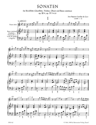 Sonates op. 3 n° 9 et op. 4 n° 9-10 / pour flûte à bec alto ou flûte, violon ou hautbois et basse continue / rév. Johann Philipp Hinnenthal