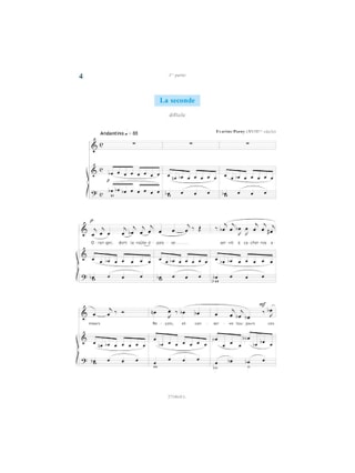 - 1ère partie: Mélodies et intervalles: musiques monodiques avec accompagnement de piano écrites sur des textes d'écrivains du XVIème au XIX ème siècle, et classées par intervalles de la 2de à la 7ème.Chaque intervalle est représentée par trois mélodies différentes, la 1ère facile, la 2ème de moyenne difficultés et la 3ème plus difficile.