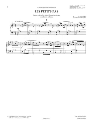 | Bernard Andrès Les petits pas 12 Pièces brèves en forme de danses pour Harpe celtique