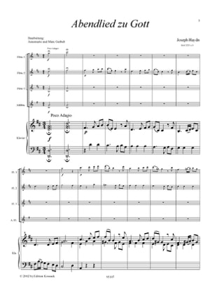 | HAYDN Abendlied zu Gott - 4 Flöten & klavier Joseph Haydn (Hob. 25 C : 9) / arr. pour 4 flûtes (3 flûtes et flûte alto) et piano (Annemarie et Marc Gutbub)