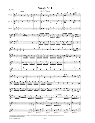 | Johann Scherer Sonate N°1 en Sol Majeur Pour 3 Flûtes