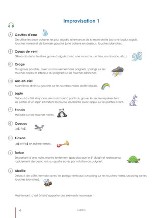 Les élèves découvriront le piano en utilisant toute sa tessiture, en se familiarisant avec les intervalles, les harmonies, le timbre etc. Ils s'approprient l'espace sonore.