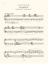 Afficher les morceaux... - (scherzo) - 4 mains - Abbamarados - Arckep - Arckep (2a, b) - Arnyjatek - Az elme szabad allat - Bogancs - Csökönyös csomok - Elegia balkezre - Felhangjatek - Hempergös - Hommage à borsody laszlo - Hommage à christian wolff - Hommage à domenico scarlatti - Hommage à farkas ferenc (2), 3 et 4 - Hommage à j.s.b - Hommage à kurtag marta - Hommage à mihaly andras - Hommage à moussorgsky - Hommage à petrovics - Hommage à ranki györgy - Hommage à schubert - Hommage à somlyo györgy - Hommage à stockhausen (LES AUTRES SANS TITRE) - Hommage à szabo ferenc - Hommage à szervanszky - Hommage à varèse - Hommage à zenon - Jatek a vegtelennel - Jelek feketeben - Kettösfogasok, kiegeszites bartok mikrokozmoszahoz - Konok asz - Nyuszicsököny - Orosz tanc - Otujjas veszekedös - Sirato (1) - Sirato (2) - Tollrajz, bucsuzoul schaar erzsebetnek 12 MICROLUDES, DONT - Utveszto de (labyrinthe) |