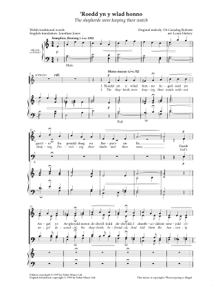 | O DEUED POB CHRISTION - Come all cristians, singing TUA BETHL'EM DREF - Come from ev'ry land SEREN BETHLEHEM - Dark the night OER YW'R GWR SY'N METHU CARU - Deck the hall with boughs of holly 'ROEDD YN Y WLAD HONNO - The shepperds were keepiing their watch |
