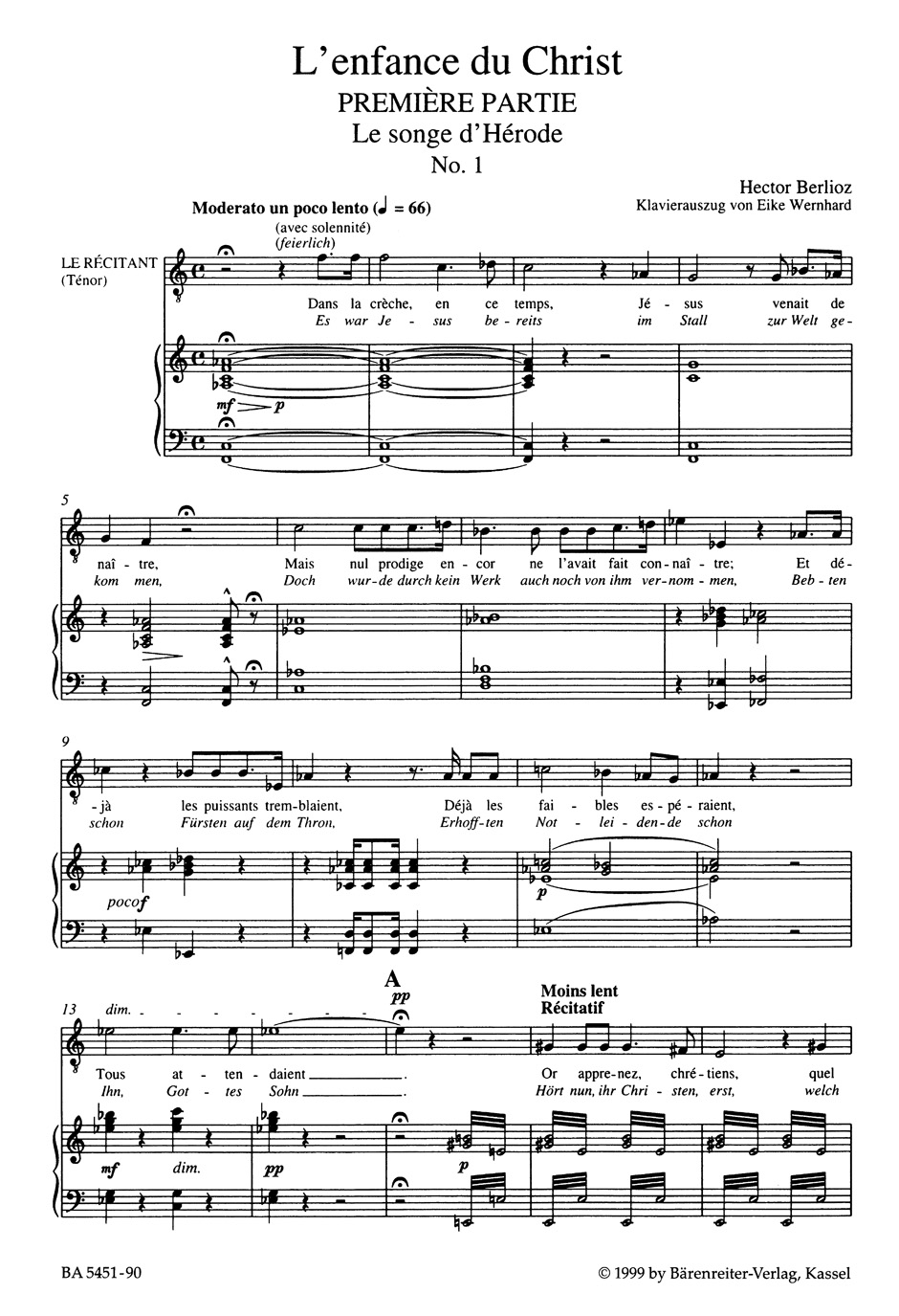 | BERLIOZ L' Enfance Du Christ Opus 25 Trilogie Sacrée pour soli STBarB, choeur mixte SATB et orchestre réduction piano