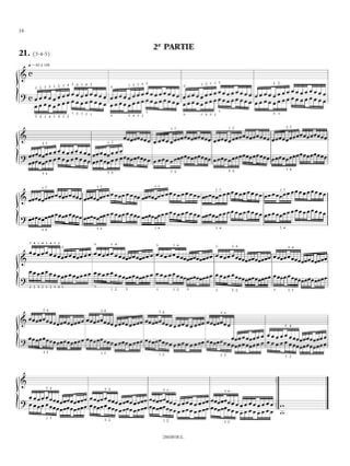 Ces exercices sont surtout des exercices digitaux (employant différentes figures répétées, généralement sur plusieurs octaves) qui n'ont pas, contrairement aux études de différents compositeurs (Chopin, Liszt, voire Czerny ou Clementi), d'intérêt musical : leur but est purement mécanique (à l'exception, éventuellement, du dernier exercice : "le Trémolo").