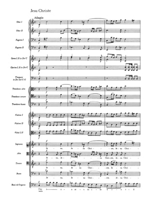 Soli(SATB), 2 gemischte Chöre(SATB+SATB), Orchester (1,2[2.auch solo], 0,0- 2,1,3,0 - Pk - Str - Org). Studienpart.