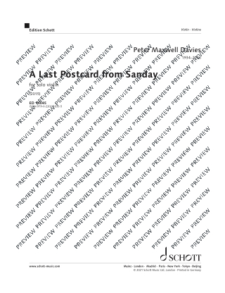 | Davies Peter Maxwell A Last Postcard from Sanday pour Violon solo (2015)