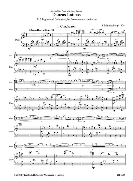 | Efrain Oscher Danzas Latinas pour 2 Bassons (le second également contrebasson) et piano