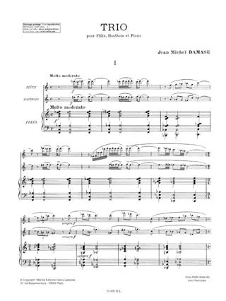 | Jean-Michel Damase Trio - pour flûte, hautbois et piano