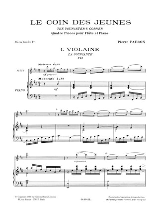 | Pierre Paubon Le coin des jeunes 4 Pièces pour flûte et piano