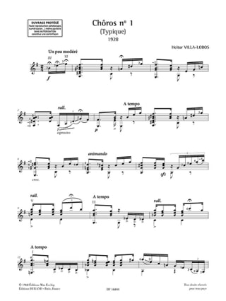Comme ce fut le cas pour beaucoup de ses œuvres pour guitare, Villa-Lobos a revisité son Chôros n° 1 à plusieurs reprises et en a créé plusieurs versions, qui ont été publiées par différents éditeurs dans les années 1920 et 1950. Il a souvent distribué des copies manuscrites de l'œuvre à certains des guitaristes les plus renommés de son époque, tels qu'Andrés Segovia, Miguel Llobet et Regino Sáinz de la Maza. Dans cette édition, éditée par Frédéric Zigante, deux versions du Chôros no. 1. La première version, datée de 1928, a été offerte à Miguel Llobet, tandis que la seconde, datant de 1957, a été publiée par Arthur Napoleão. Les principales différences entre les deux versions résident dans les harmonies, les arrangements mélodiques et les arrangements de la ligne de basse de la version de 1928.
